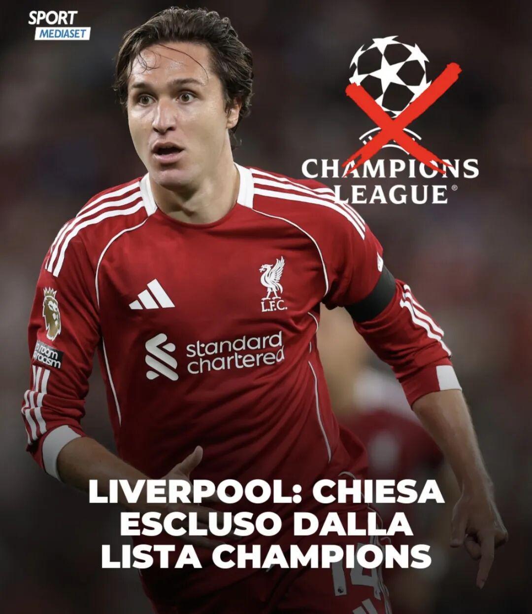 但只有17个非本土培养球员名额,基耶萨未能进入本次比赛的名单。里奥-恩古莫哈也被视为非本土培养球员,因为他去年才加盟利物浦。