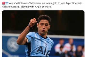 罗马诺指出,贝利斯将再次被热刺外租,下家是阿根廷俱乐部罗萨里奥中央,他将与迪马利亚成为队友。